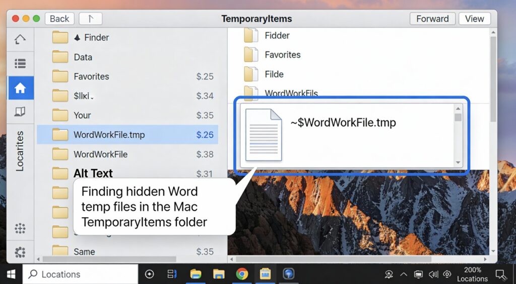 When Word is open, it creates temporary files to handle the data you are actively typing. Even if the main AutoRecovery fails, these temp files sometimes get left behind in a hidden system folder called TemporaryItems.